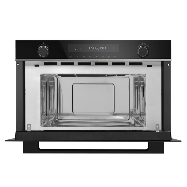 Глубина микроволновой печи —параметр, наиболее сильно влияющий на объем камеры и на диаметр вращающегося стеклянного блюда. Отдельно стоящие микроволновки соло, а также приборы, оснащенные грилем, имеют глубину от 35 до 45 см. При их установке на столешнице следует учитывать, в какую сторону и насколько широко будет открываться дверца. Глубина микроволновки, которая встраивается в кухонную мебель, также варьируется в широком диапазоне. Для полноразмерных моделей с откидной или навесной дверцей она может составить около 52-55 см, а для менее вместительных приборов — порядка 32-35 см.