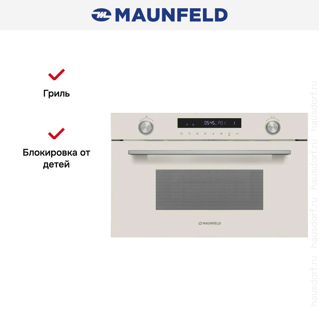 Встраиваемая микроволновая печь Maunfeld MBMO349GBG — это удачное сочетание современных технологий, продуманного дизайна и практичности. Прибор легко впишется как в классическую, так и в современную кухню: бежевый корпус с элементами из нержавеющей стали выглядит стильно, но не кричаще, а хромированная фурнитура добавляет лёгкий акцент. Внутри — вместительная камера на 34 литра с покрытием из нержавеющей стали, которое не впитывает запахи и легко чистится.