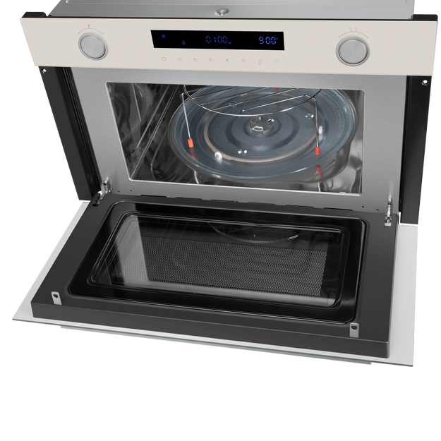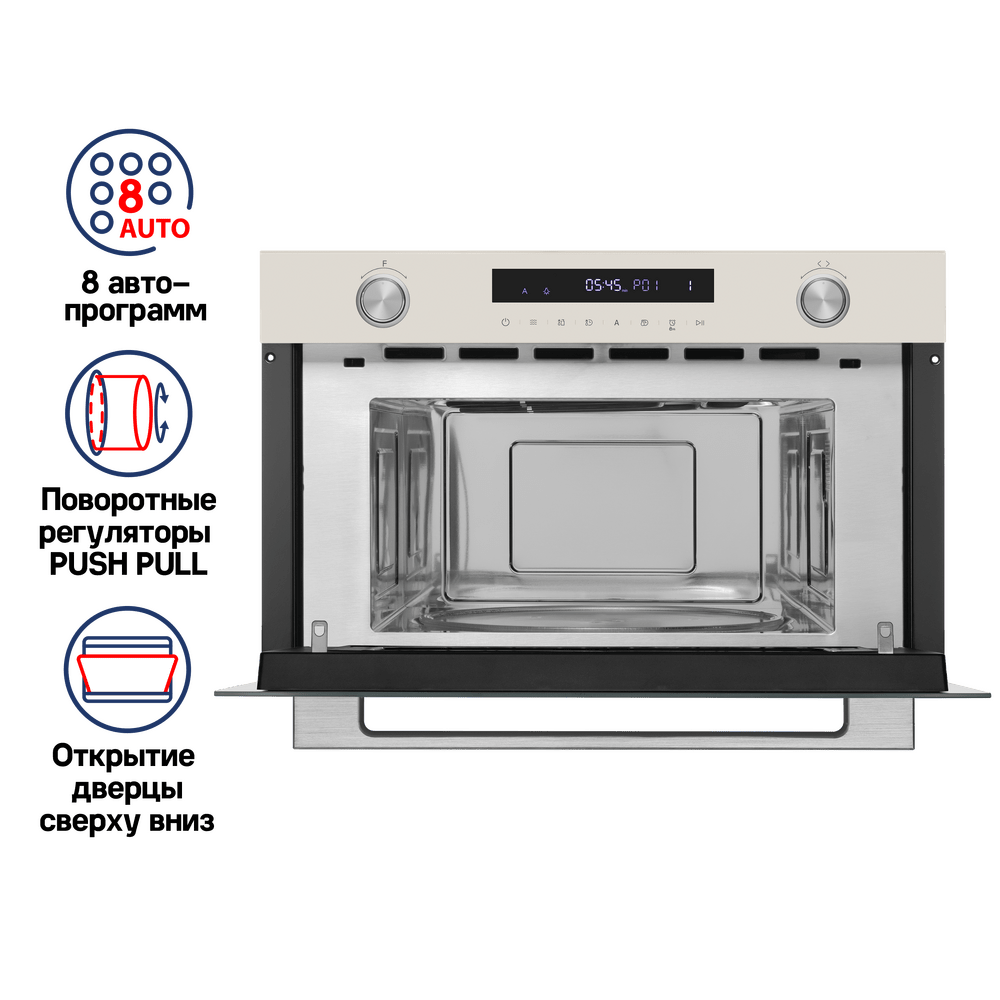 Конвекционный вентилятор устанавливается в микроволновках без поворотного стола: равномерное распределение горячего воздуха позволяет размещать в камере сразу несколько блюд. Комбинация вентилятора и верхнего гриля называется турбогрилем: этот режим очень хорош для выпечки больших пирогов и кексов. Сочетание гриля и конвекции подойдет и для приготовления больших кусков мяса или целой птицы и рыбы. Добавление традиционного нижнего нагревательного элемента превращает микроволновую печь в аналог полноценной духовки: с ее помощью можно готовить, разогревать и размораживать, запекать и томить, обжаривать и тушить.