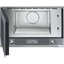 Панель управления этой встраиваемой модели расположена в нижней части фасада: устройство можно устанавливаться в колонну на любой высоте. Внутренняя камера объемом 22 литра изготовлена из нержавеющей стали и имеет керамическое основание, что позволяет готовить пищу без поворотного стола. Благодаря этому объем камеры увеличивается, а блюда размещаются более удобно. Для установки параметров работы используются два ЖК-дисплея и два поворотных переключателя с подсветкой и эффектом нержавеющей стали. Для защиты от случайного изменения параметров предусмотрена блокировка управления. Шесть режимов работы позволяют готовить при помощи микроволн, откидного гриля, их комбинаций, а также размораживать продукты по весу и по времени и выпекать пиццу. Дополнительно можно приобрести форму для пиццы KITPLATE. Приготовление не займет много времени благодаря высокой мощности микроволн 850 Вт и гриля 1200 Вт. Автоматическое отключение при открытой дверце позволяет пользоваться устройством совершенно безопасно. Для освещения камеры предназначается лампа накаливания. Функция быстрого нагрева позволит одним нажатием запустить работу с максимальной мощностью.