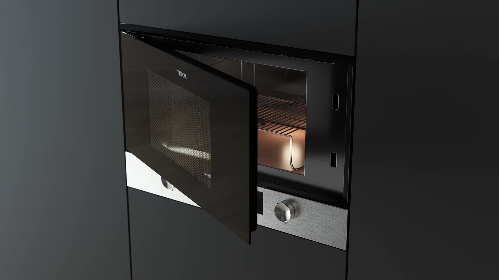 Гораздо шире выбор цветов у встраиваемых моделей. Большинство подобных микроволновок относится к премиум-сегменту, что предполагает большее разнообразие дизайна, тем более учитывается при этом только цвет фасада. Пребладают на рынке все те же модели белого и черного цветов, а также стальных и серебристых оттенков. Среди них можно выбрать микроволновки в современном и классическом стиле. Кроме них, можно выделить модели Teka и Zigmund Shtain из коллекции Кантри теплого оттенка ванили в сочетании с фурнитурой цвета состаренной бронзы. Интересны СВЧ-печи с фасадами сдержанных оттенков: серого с платиновым стеклом от V-ZUG, цвета серого камня от Teka, графитового серого от Miele. Яркие тона для этих микроволновок используются редко: среди них модели красного цвета Kuppersberg, медного от Korting, коричневого от Teka и Smeg.