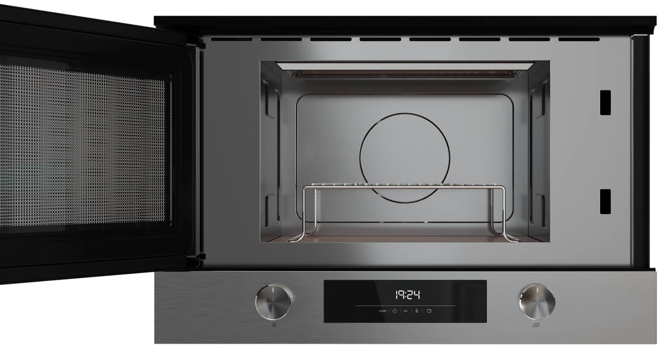 Нержавеющая сталь — быстро нагревается и хорошо переносит высокие температуры, поэтому ее используют в микроволновках с конвекцией.