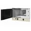 По типу управления микроволновые печи делятся на механические, электромеханические и электронные. Панель управлния у отдельно стоящих и у встраиваемых моделей с навесной дверцей располагается обычно в правой части корпуса, а у встраиваемых устройств с откидной дверцей — в верхней части. При помощи элементов панели управления пользователь может задавать основные параметры работы: уровень мощности микроволн, время приготовления, режим работы, автоматическую программу, а также дополнительные опции — например, включение гриля.