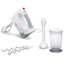 Обратите внимание на цвет миксера Бош — белый — он может стать как гармоничным дополнением кухонной обстановки, так и ярким акцентом. В комплекте с самим прибором идут дополнительные элементы: венчик для взбивания, крюки для теста, мерный стакан с крышкой, насадка-блендер.