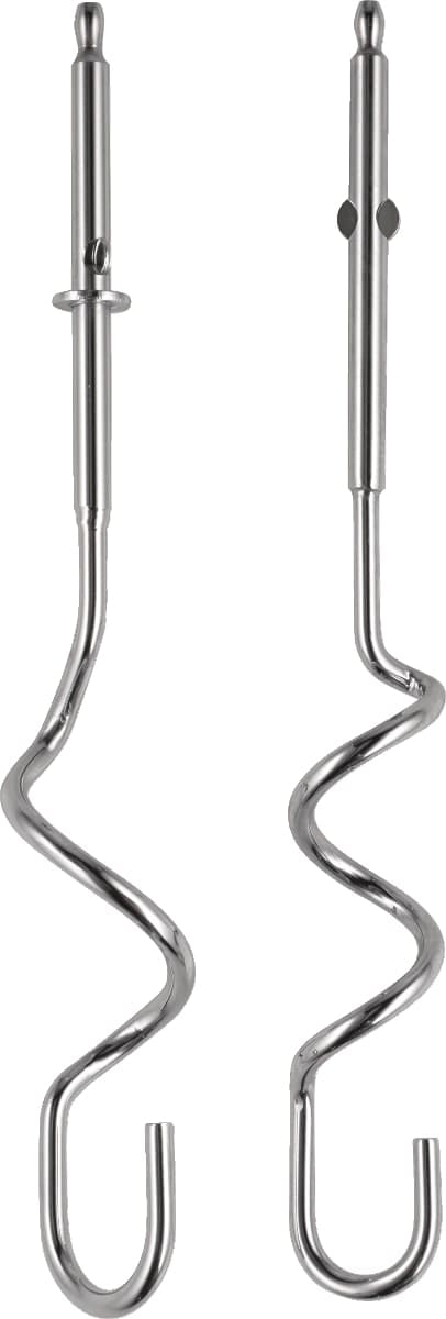 Крюки для теста представляют собой спираль, изготовленную из нержавеющей стали, с крюком на конце и используются для смешивания теста разной консистенции, от жидкого до плотного, а также для приготовления густых соусов или кремов. При использовании крюков получается однородная, но не взбитая смесь.