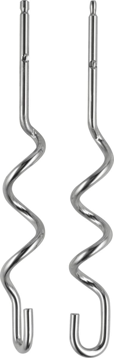Крюки для теста представляют собой спираль, изготовленную из нержавеющей стали, с крюком на конце и используются для смешивания теста разной консистенции, от жидкого до плотного, а также для приготовления густых соусов или кремов. При использовании крюков получается однородная, но не взбитая смесь.