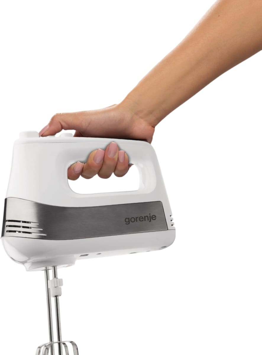 Миксер Gorenje M500DCS — это надёжный стационарный помощник на кухне, созданный для тех, кто ценит удобство, функциональность и эстетику в приготовлении блюд. Белоснежный корпус из прочного пластика придаёт устройству лёгкость и современный вид, гармонично вписываясь в интерьер любой кухни — от классической до минималистичной. Компактные габариты (35,5×30,5×21,5 см) позволяют разместить прибор даже на ограниченной рабочей поверхности, не загромождая пространство.