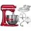 Обратите внимание на цвет миксера Китчен Эйд — красный — он может стать как гармоничным дополнением кухонной обстановки, так и ярким акцентом. В комплекте с самим прибором идут дополнительные элементы: венчик для взбивания, защитный обод с воронкой для засыпания продуктов, крюки для теста, насадка-лопатка для перемешивания. Вы можете приобрести и установить другие насадки, для них создано специальное гнездо. Также производитель предусмотрел вариант расширения функционала до кухонного комбайна.