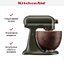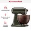 Обратите внимание на цвет миксера Китчен Эйд — темно-зеленый — он может стать как гармоничным дополнением кухонной обстановки, так и ярким акцентом. В комплекте с самим прибором идут дополнительные элементы: венчик для взбивания, крюки для теста, лопатка с гибким ребром.