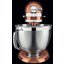 Обратите внимание на цвет миксера Китчен Эйд — медь — он может стать как гармоничным дополнением кухонной обстановки, так и ярким акцентом. В комплекте с самим прибором идут дополнительные элементы: венчик для взбивания, крюки для теста, насадка-лопатка для перемешивания, чаша из нержавеющей стали объемом 3 л, прозрачный защитный обод.