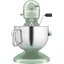 Обратите внимание на цвет миксера Китчен Эйд — фисташковый — он может стать как гармоничным дополнением кухонной обстановки, так и ярким акцентом. В комплекте с самим прибором идут дополнительные элементы: венчик для взбивания, крюки для теста, насадка-лопатка для перемешивания, защитный обод. Также производитель предусмотрел вариант расширения функционала до кухонного комбайна.