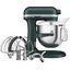 Обратите внимание на цвет миксера Китчен Эйд — пальмовый — он может стать как гармоничным дополнением кухонной обстановки, так и ярким акцентом. В комплекте с самим прибором идут дополнительные элементы: венчик для взбивания, крюки для теста, насадка-лопатка для перемешивания, лопатка с гибким ребром, защитный обод. Также производитель предусмотрел вариант расширения функционала до кухонного комбайна.