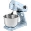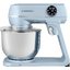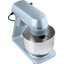 Обратите внимание на цвет миксера Маунфилд — голубой — он может стать как гармоничным дополнением кухонной обстановки, так и ярким акцентом. В комплекте с самим прибором идут дополнительные элементы: венчик для взбивания, защитный обод с воронкой для засыпания продуктов, крюки для теста, насадка-лопатка для перемешивания.