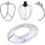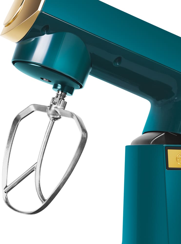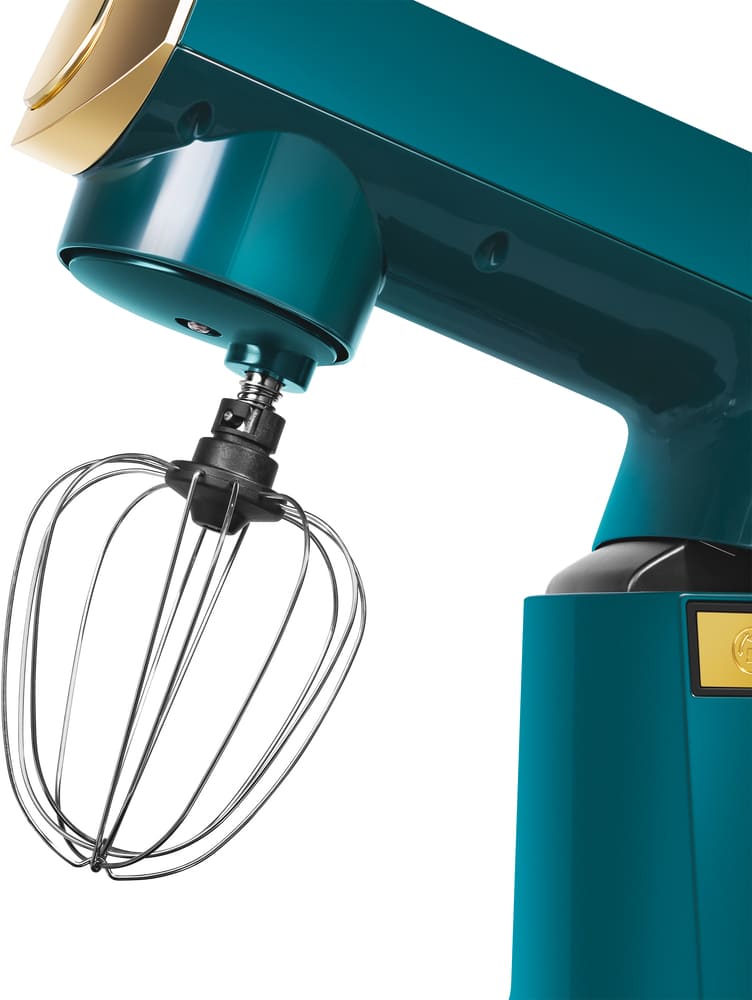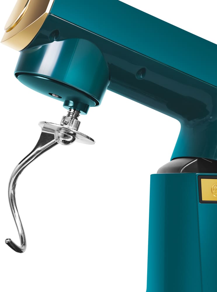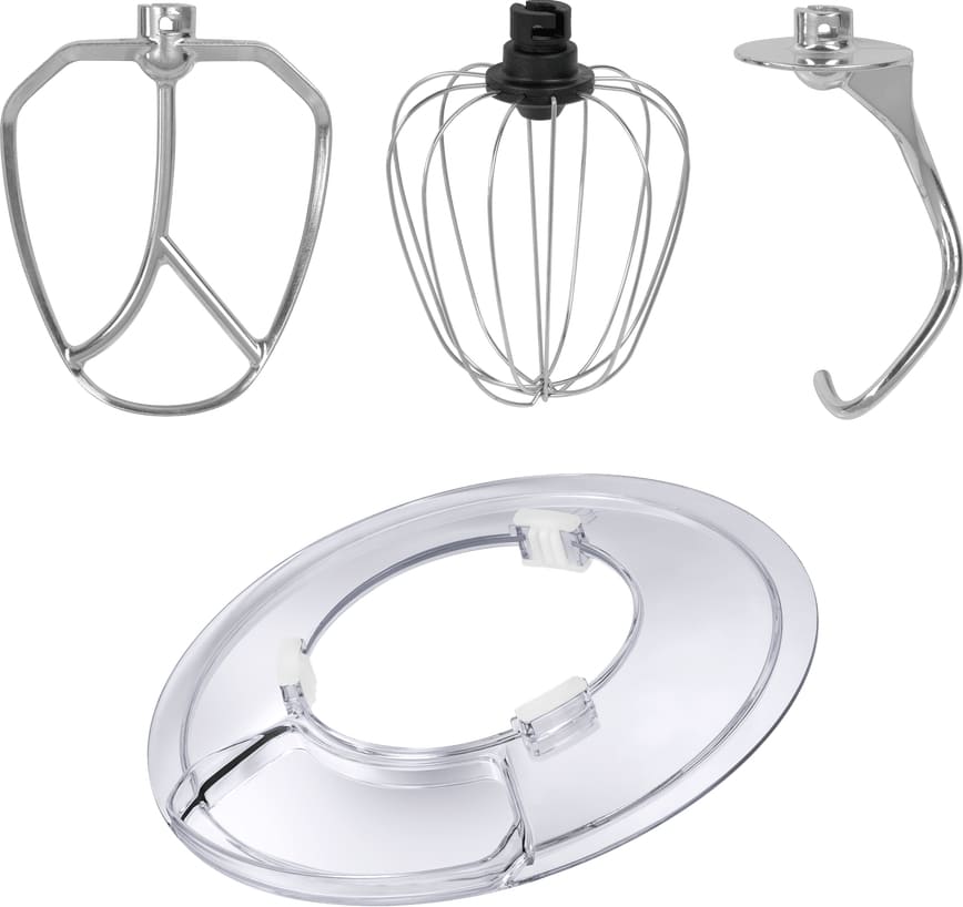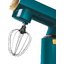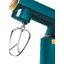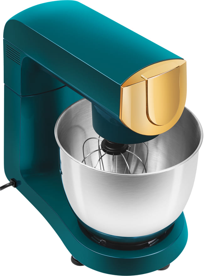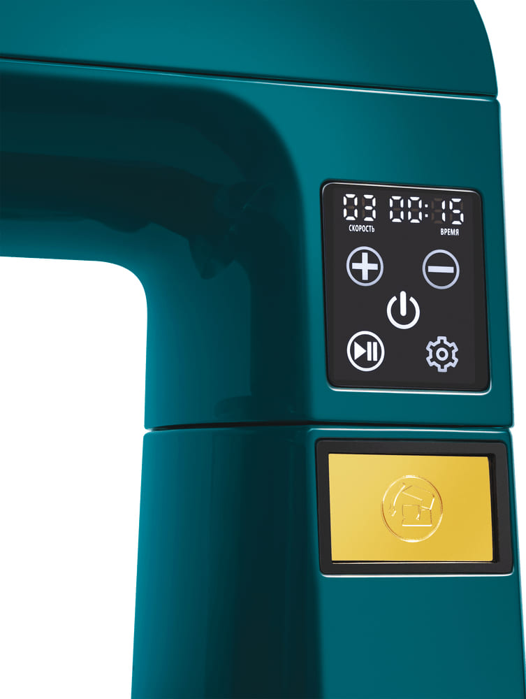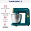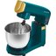 Обратите внимание на цвет миксера Маунфилд — зеленый — он может стать как гармоничным дополнением кухонной обстановки, так и ярким акцентом. В комплекте с самим прибором идут дополнительные элементы: венчик для взбивания, защитный обод с воронкой для засыпания продуктов, крюки для теста, насадка-лопатка для перемешивания.