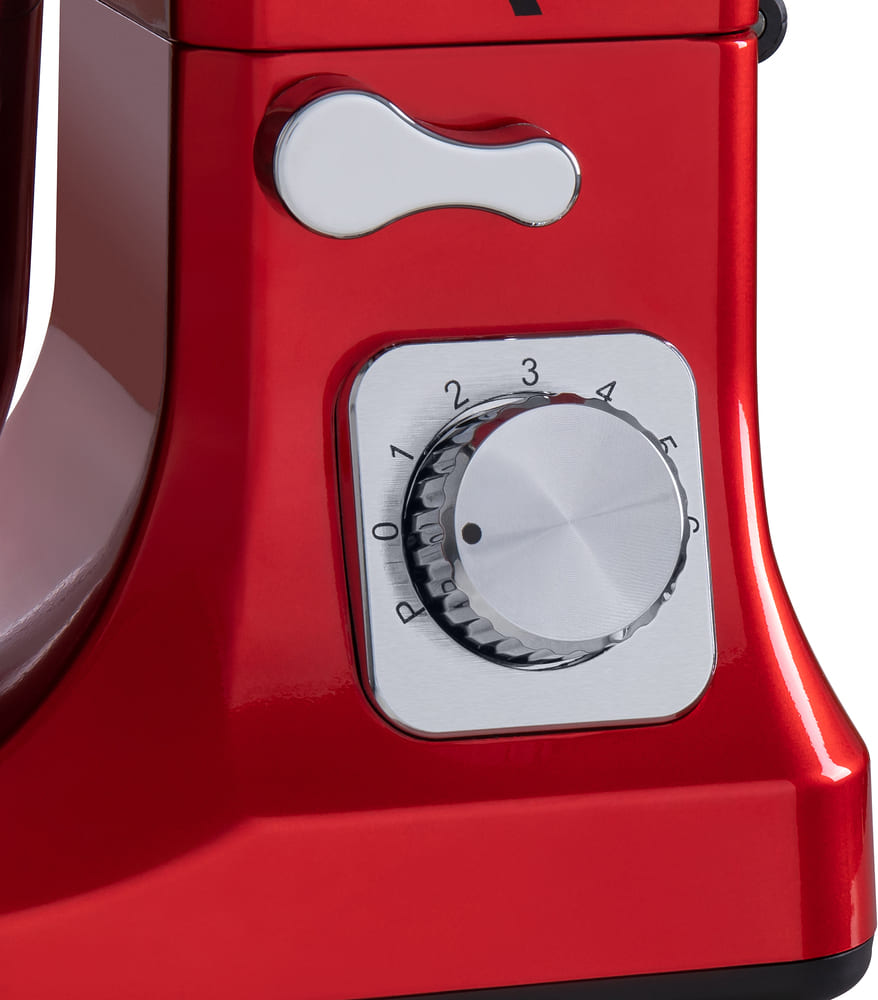 Мощность 1000 Вт обеспечивает уверенную работу с плотным тестом и большими порциями кремов. Модель без труда справляется даже с густыми и вязкими массами. Шесть скоростей с механическим регулированием дают точный контроль над процессом, а импульсный режим помогает быстро добиваться нужной консистенции и вовремя останавливать процесс. Планетарное вращение гарантирует равномерное перемешивание по всему объему: насадка движется не только по кругу чаши, но и вокруг своей оси. Это не только помогает избежать образования комков, но и сокращает время взбивания