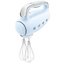 Ручной миксер Smeg HMF01PBEU — изящный и стильный, в корпусе пастельно-голубого цвета, изготовлен из прочного пластика, не выделяющего вредных веществ. Ручка с покрытием Soft touch не скользит даже во влажной руке. Этой же рукой можно управлять работой миксера — кнопки переключения скоростей находятся на ручке. 9 скоростей вращения позволяют приготовить соусы, кремы, замесить тесто, взбить масло или сливки. 6 насадок миксера Смег HMF01PBEU, в том числе венчик для взбивания и лопатка для замешивания, хранятся в тканевом чехле.