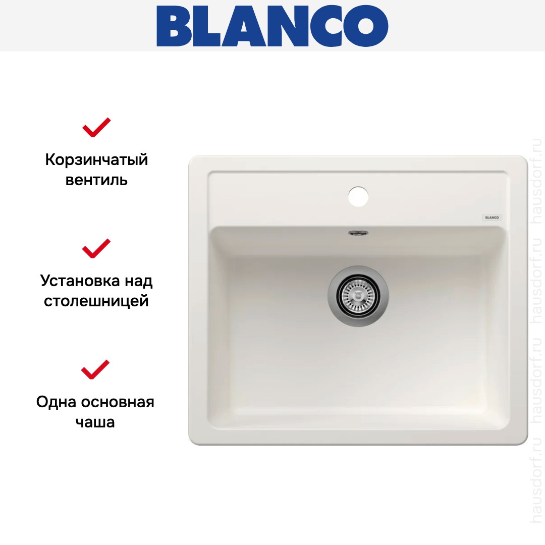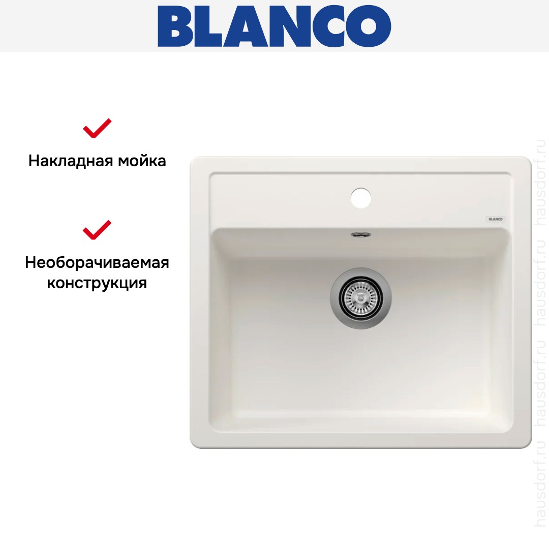 Накладная мойка Blanco — отличный выбор для тех, кто хочет создать гармоничное пространство с удобной сантехникой. простой в установке. Преимущество такой конструкции: легко подобрать практически к любой кухне и не придется демонтировать вместе с тумбой при ремонте или перестановке остальной мебели. Данная модель имеет стандартную форму, поэтому подходит большинству пользователей. Устанавливается над столешницей: это самый простой способ монтажа, зачастую с ним можно справиться даже без специалистов, главное — правильно рассчитать размеры ниши.