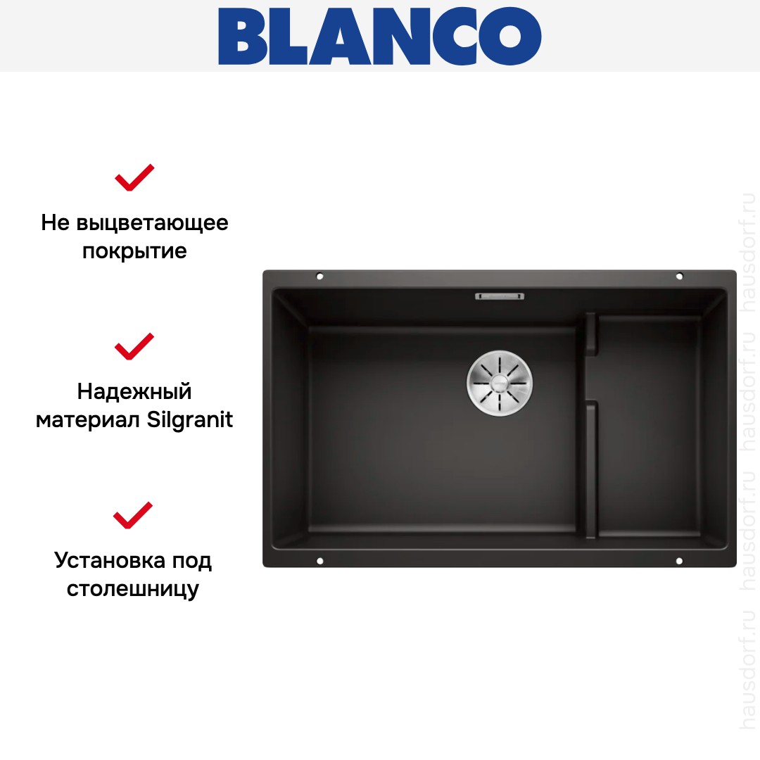 Обратите внимание на дизайнерские отличия мойки Бланко, которые помогут в создании идеальной кухни в вашем доме. Она выполнена в цвете черный. Основной материал — Silgranit, он гарантирует надежность и долгие годы службы без повреждений.