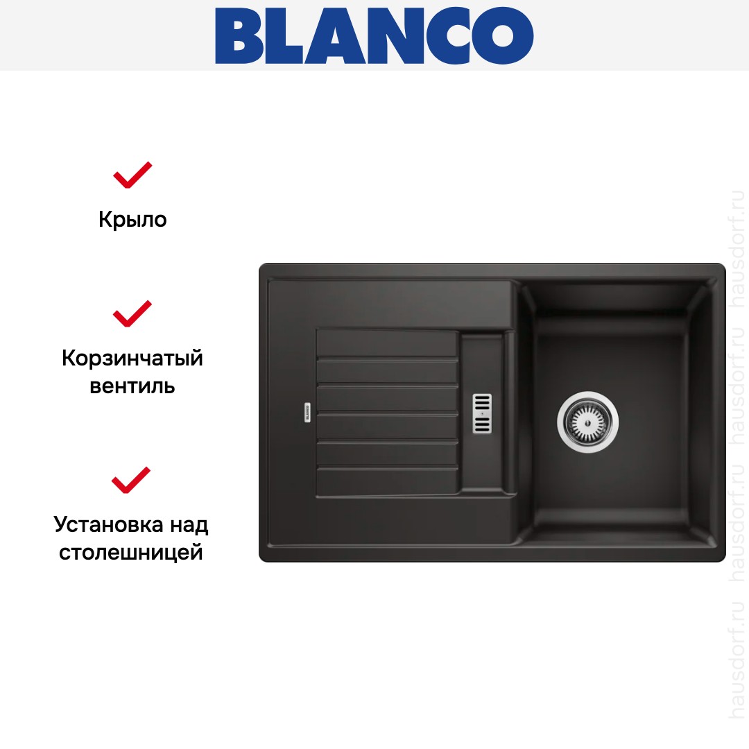 Мойка BLANCO ZIA 45 S Silgranit черный в Санкт-Петербурге