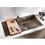 Установка накладной мойки над столешницей — наиболее простой и экономичный способ, не требующий выреза специального отверстия. В процессе установки мойка может накладываться на столешницу сверху или даже полностью ее заменять. Подобные мойки имеют обычно прямоугольную или квадратную форму.