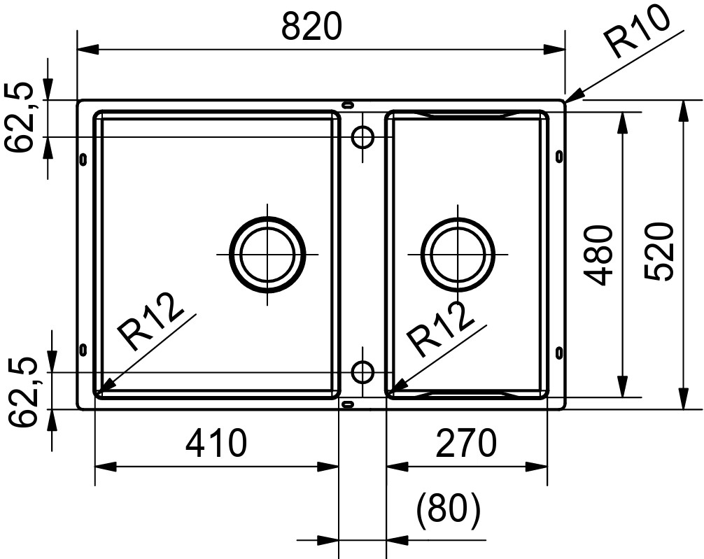 Особенностью модели являются минимальные радиусы скруглений: внутренняя чаша имеет закругление всего 1,2 см, а внешние кромки — 1 см. Такой подход придаёт изделию чёткие геометрические формы, подчёркивая современный характер дизайна, и в то же время упрощает очистку за счёт почти прямых углов. Мойка изготовлена из высококачественной нержавеющей стали и отличается исключительной устойчивостью к коррозии, механическим повреждениям и перепадам температур. Матовая поверхность сохраняет презентабельный вид даже при ежедневном использовании, эффективно маскируя мелкие царапины и отпечатки.