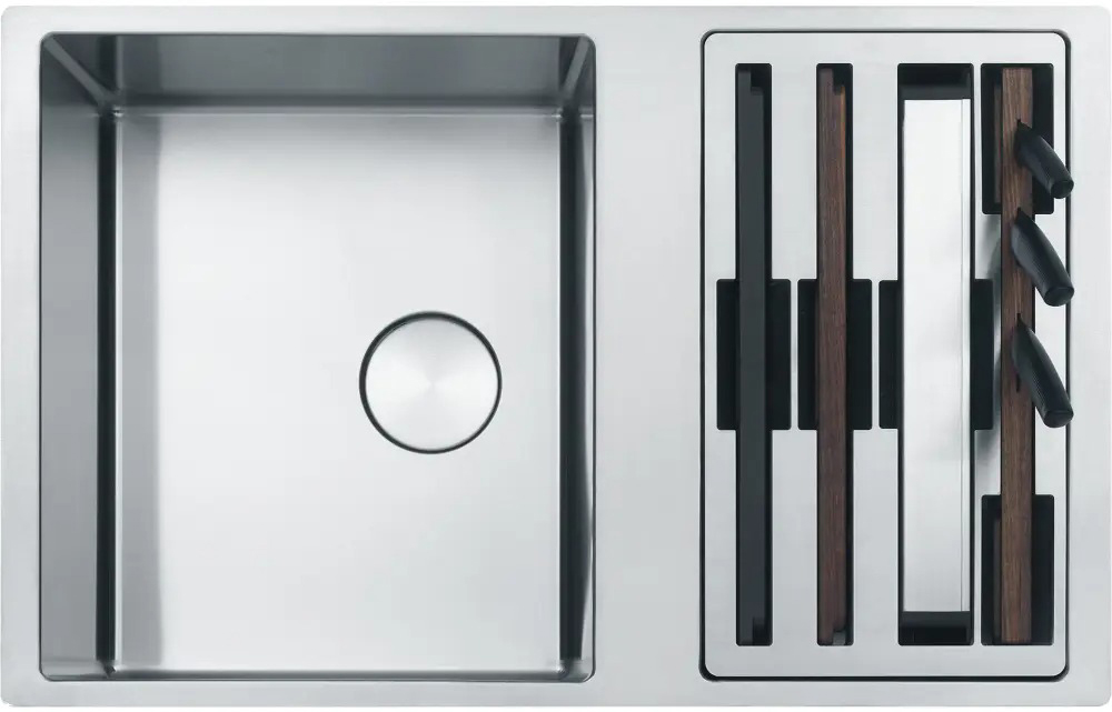 Конструкция предназначена исключительно для установки под столешницу, что создаёт эффект плавного перехода от рабочей поверхности к чаше и подчёркивает современный лаконичный стиль интерьера. Такой монтаж особенно популярен в премиальных кухонных проектах, где важны чистота линий и простота ухода. Для правильной установки требуется тумба шириной 90 см, а проём в столешнице должен составлять 78×48 см, что обеспечивает плотное прилегание и надёжную герметизацию.