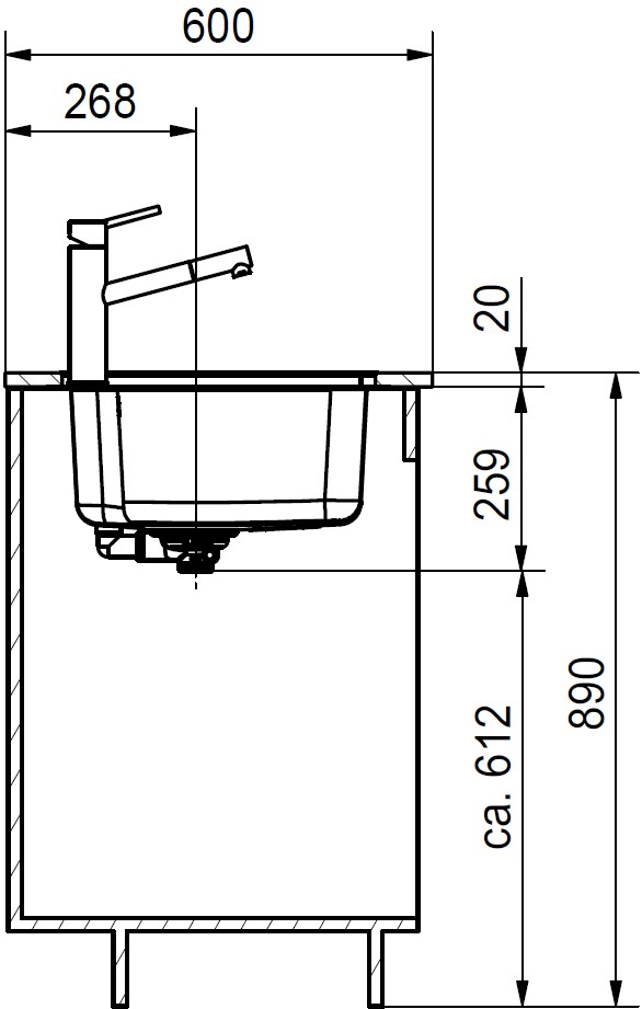 База — это шкаф, в который вы планируете устанавливать мойку. Данный параметр обозначает минимальную ширину между боковые стенками. Именно столько нужно, чтобы правильно разместить всю сантехнику.
