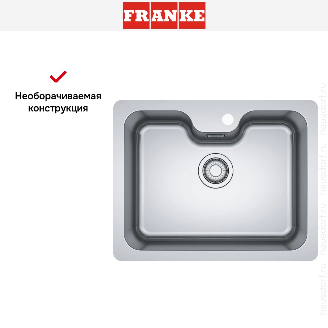 Необорачиваемую мойку можно установить только в одном положении — поэтому при наличии крыла необходимо заранее продумать, как вы хотите ее разместить. Модель имеет одно отверстие для смесителя, может быть разной формы — круглой, квадратной, прямоугольной и нестандартной. Изготавливаются из разных материалов.