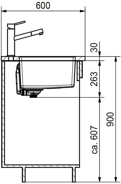База — это шкаф, в который вы планируете устанавливать мойку. Данный параметр обозначает минимальную ширину между боковые стенками. Именно столько нужно, чтобы правильно разместить всю сантехнику.