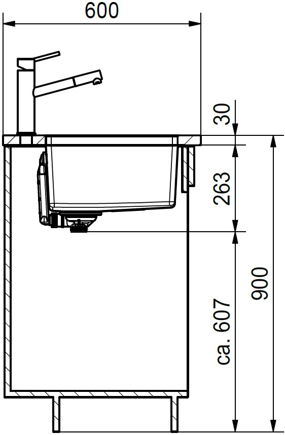 База — это шкаф, в который вы планируете устанавливать мойку. Данный параметр обозначает минимальную ширину между боковые стенками. Именно столько нужно, чтобы правильно разместить всю сантехнику.