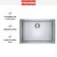 Особенностью конструкции являются минимальные радиусы скруглений: внутренняя чаша имеет закругление радиусом 1,6 см, а внешние кромки — 1 см. Такой подход придаёт изделию чёткие геометрические формы, подчёркивая современный характер дизайна, и в то же время упрощает очистку за счёт почти прямых углов. Мойка изготовлена из высококачественной нержавеющей стали и отличается превосходной устойчивостью к коррозии, царапинам и перепадам температур. Матовая поверхность сохраняет эстетичный вид даже при интенсивной эксплуатации, эффективно маскируя мелкие следы и отпечатки.