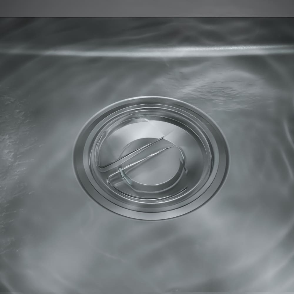Дизайн изделия отличается плавными формами: радиус скругления внутренней чаши составляет 2 см, а внешних кромок — 4 см. Эти плавные изгибы придают мойке утончённый вид и значительно облегчают уход, исключая скопление загрязнений в углах. Модель изготовлена из высококачественной нержавеющей стали, устойчивой к коррозии, царапинам и перепадам температур. Матовая текстура поверхности сохраняет эстетичный вид даже при интенсивной эксплуатации, эффективно маскируя мелкие следы.