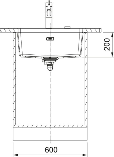 Глубина чаши 43,3 см обеспечивает комфорт при выполнении повседневных задач — от мытья посуды до подготовки продуктов — и эффективно снижает риск разбрызгивания воды. Внутренние углы закруглены радиусом 2 см, что придает форме мягкость и облегчает очистку, а внешний контур имеет более четкие, но все же сглаженные линии с радиусом 1,5 см, что подчеркивает современный характер дизайна.