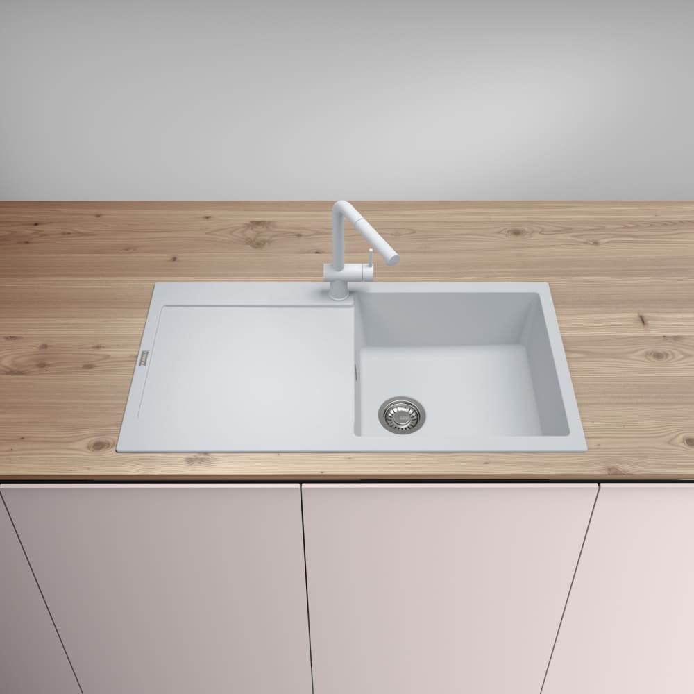Обратите внимание на дизайнерские отличия мойки Франке, которые помогут в создании идеальной кухни в вашем доме. Она выполнена в цвете белый. Основной материал — фрагранит, он гарантирует надежность и долгие годы службы без повреждений. Крыло, расположенное слева или справа, является дополнительным рабочим пространством, на котором можно сушить посуду, разделывать мясо и нарезать овощи.