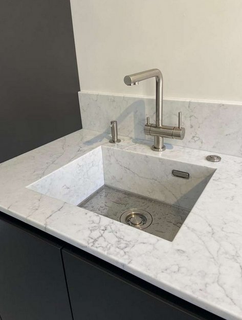 Для создания бесшовного дизайна кухни или ванной можно интегрировать мойку в столешницу так, чтобы создавалось ощущение единого пространства. Такие модели устанавливаются под столешницу и сделаны из такого же материала. Встроить подобную мойку в уже готовую кухню сложно, обычно их выбирают на этапе продумывания интерьера.