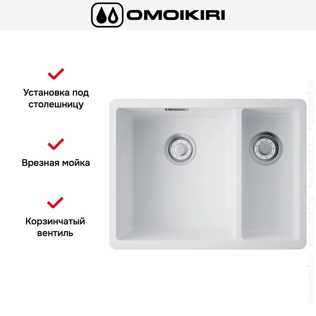 Мойка Omoikiri Kata 55-2-U-WH в Санкт-Петербурге