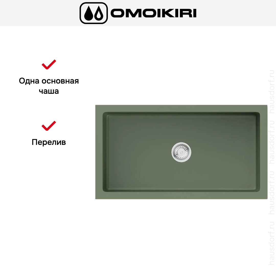 Мойка Omoikiri Mikura 76 OL — модульная прямоугольная модель для установки над столешницей, разработанная для современных кухонь с акцентом на практичность и эстетичность. Выполнена в оливковом оттенке, она привносит мягкий цветовой акцент и легко сочетается с натуральными и матовыми поверхностями. Габариты 76×46 см и глубина чаши 25,4 см делают изделие универсальным решением для типичных кухонных модулей.