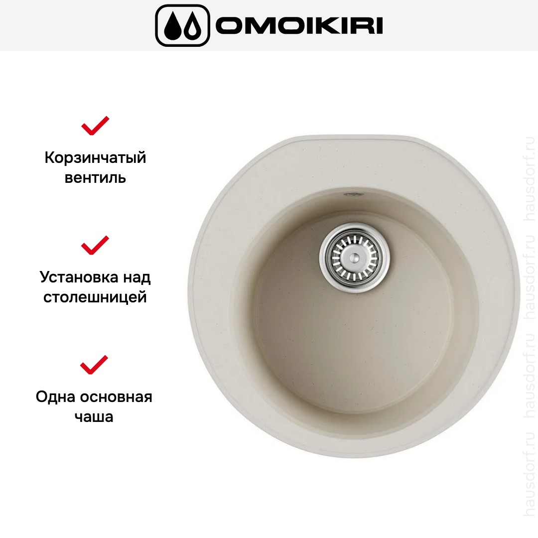 Мойка OMOIKIRI MIYA 50R-EV — стильное и практичное решение для компактной кухни. Ее округлая форма смягчает интерьер и визуально увеличивает рабочую зону, а цвет «Эверест» добавляет свежести и легкости любой столешнице.