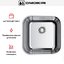 выглядит как компактная квадратная мойка из нержавеющей стали с габаритами 44,5×44,5 см — строгая геометрия и мягкие радиусы скругления 6,5 см создают сдержанный, практичный образ. Мойка имеет одну основную чашу размером 40×40 см и глубиной 18 см, что придаёт ей сбалансированный силуэт и удобные пропорции для повседневных задач. Поверхность сохранена в естественном металловом тоне нержавеющей стали, а цельнотянутая конструкция подчёркивает монолитность корпуса.