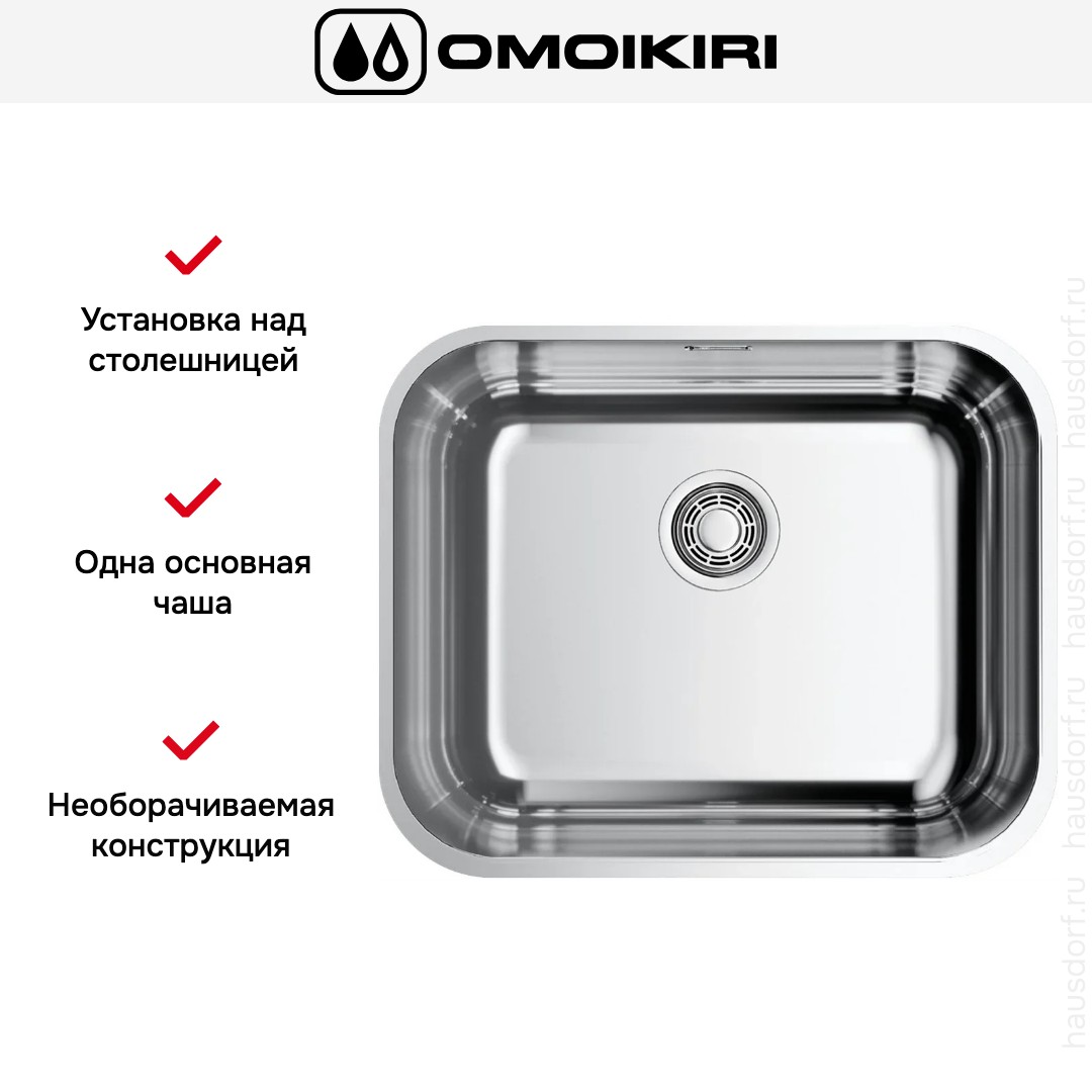 Врезная мойка Omoikiri — отличный выбор для тех, кто хочет создать гармоничное кухонное пространство с полностью вписывающейся в него сантехникой. Преимущество такой конструкции — плотное прилегание к столешнице, так как вырез подбирается индивидуально под габариты модели. Под стыки не попадает вода, поэтому срок службы значительно увеличивается, пользоваться ей удобно и приятно. Данная модель имеет стандартную форму, поэтому подходит большинству пользователей. Устанавливается под столешницу, благодаря чему не остается стыков, в которых копились бы загрязнения, а также увеличивается рабочая глубина. Устанавливается над столешницей: это самый простой способ монтажа, зачастую с ним можно справиться даже без специалистов, главное — правильно рассчитать размеры ниши.