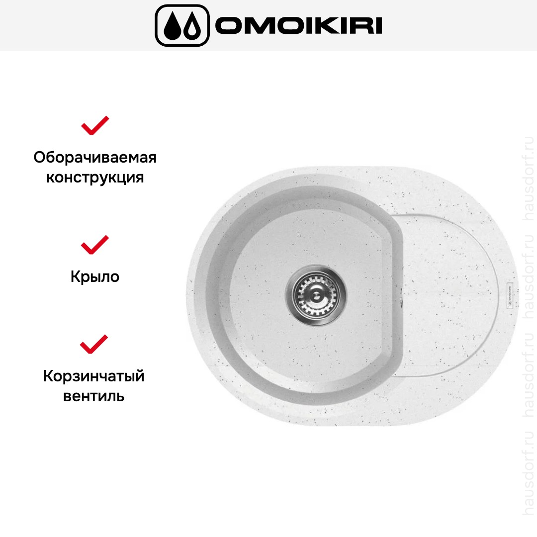 Накладная мойка Omoikiri — отличный выбор для тех, кто хочет создать гармоничное пространство с удобной сантехникой. простой в установке. Преимущество такой конструкции: легко подобрать практически к любой кухне и не придется демонтировать вместе с тумбой при ремонте или перестановке остальной мебели. Данная модель имеет скругленный контур, поэтому выбор тумбочки для нее потребует дополнительного внимания. Устанавливается над столешницей: это самый простой способ монтажа, зачастую с ним можно справиться даже без специалистов, главное — правильно рассчитать размеры ниши.