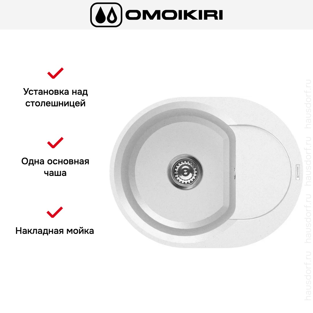 Накладная мойка Omoikiri — отличный выбор для тех, кто хочет создать гармоничное пространство с удобной сантехникой. простой в установке. Преимущество такой конструкции: легко подобрать практически к любой кухне и не придется демонтировать вместе с тумбой при ремонте или перестановке остальной мебели. Данная модель имеет скругленный контур, поэтому выбор тумбочки для нее потребует дополнительного внимания. Устанавливается над столешницей: это самый простой способ монтажа, зачастую с ним можно справиться даже без специалистов, главное — правильно рассчитать размеры ниши.