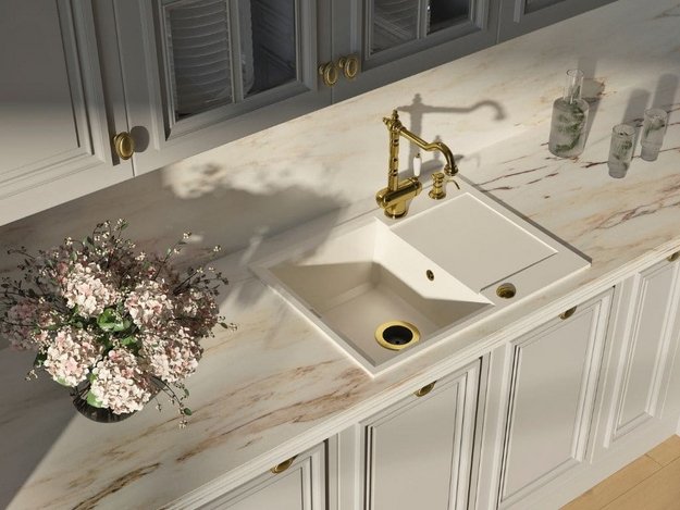 Удобны и элегантны мойки из керамики: они могут изготавливаться из фарфора, фаянса или керамогранита и отлично смотрятся в классическом или деревенском интерьере. Такие модели, особенно фарфоровые и фаянсовые, нужно беречь от механических повреждений.
