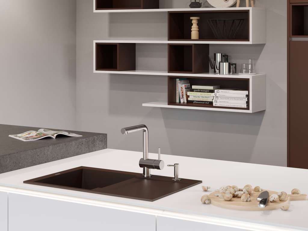 Глубина чаши — очень важная характеристика, на которую необходимо обратить внимание, подбирая вариант для вашей кухни. Выбирать следует одновременно мойку по глубине и смеситель по высоте излива: если не согласовать эти два размера, мыть посуду или подготавливать продукты перед готовкой будет неудобно из-за брызг. Глубина зависит от многих параметров: количества чаш, типа чаши — основной или дополнительной, даже материала изготовления, а также габаритов самой мойки. Кроме того, рекомендуется ориентироваться на пищевые привычки семьи — какие продукты и какая посуда используется чаще всего и поместится ли она в раковину.