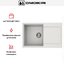 Материал — литой TetoGranit, единая конструкция не имеет стыков и швов. Такая технология производства помогает добиться равномерной толщины, а вес 8.3 кг подтверждает основательность и устойчивость. Белого цвета поверхность органично сочетается как со светлыми, так и с контрастными столешницами, не перегружая интерьер.