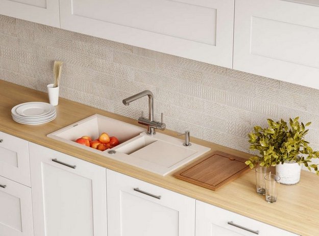 Глубина чаши — очень важная характеристика, на которую необходимо обратить внимание, подбирая вариант для вашей кухни. Выбирать следует одновременно мойку по глубине и смеситель по высоте излива: если не согласовать эти два размера, мыть посуду или подготавливать продукты перед готовкой будет неудобно из-за брызг. Глубина зависит от многих параметров: количества чаш, типа чаши — основной или дополнительной, даже материала изготовления, а также габаритов самой мойки. Кроме того, рекомендуется ориентироваться на пищевые привычки семьи — какие продукты и какая посуда используется чаще всего и поместится ли она в раковину.