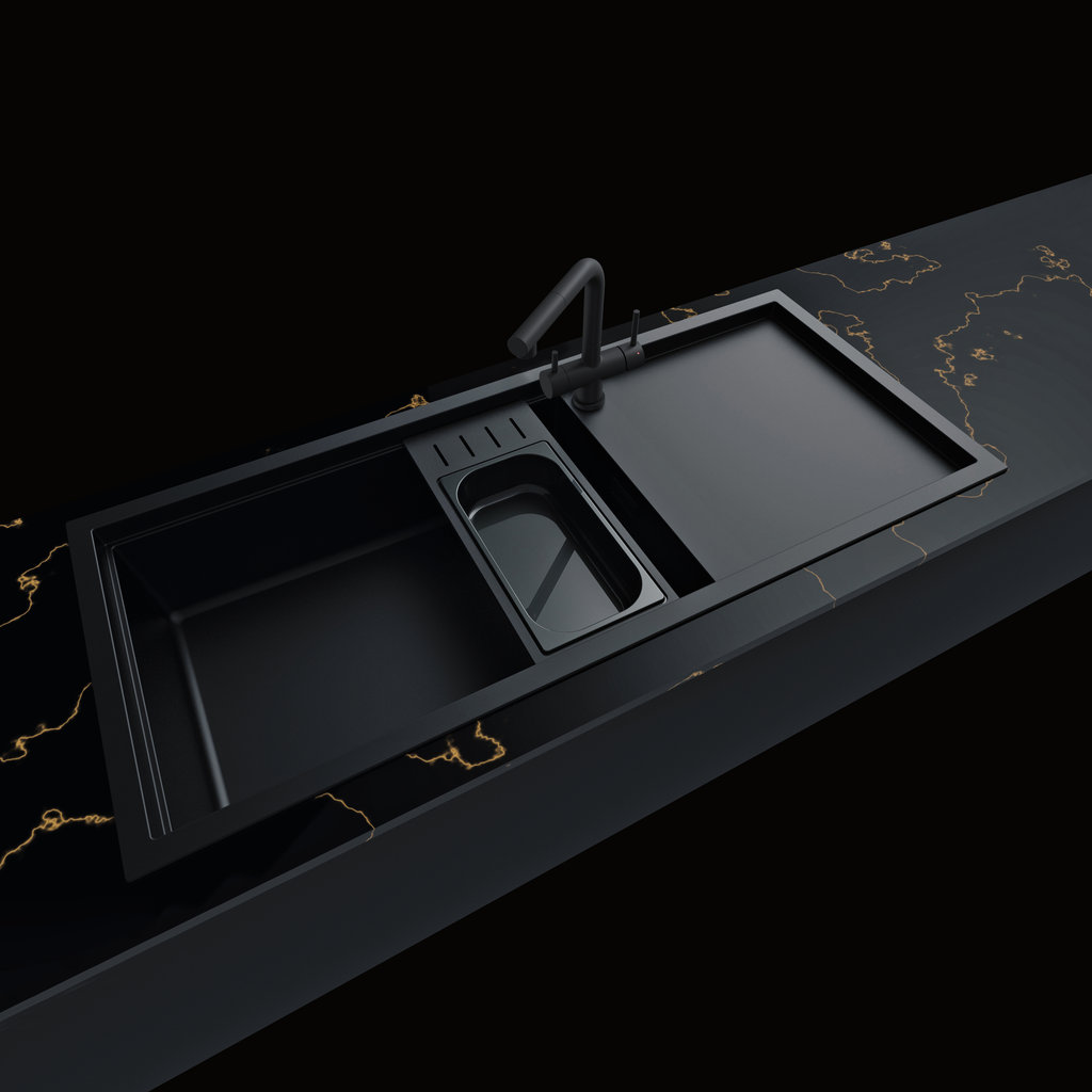 вровень со столешницей — создается ощущение бесшовного пространства, а если мойка сделана из того же материала, то и единого дизайна;