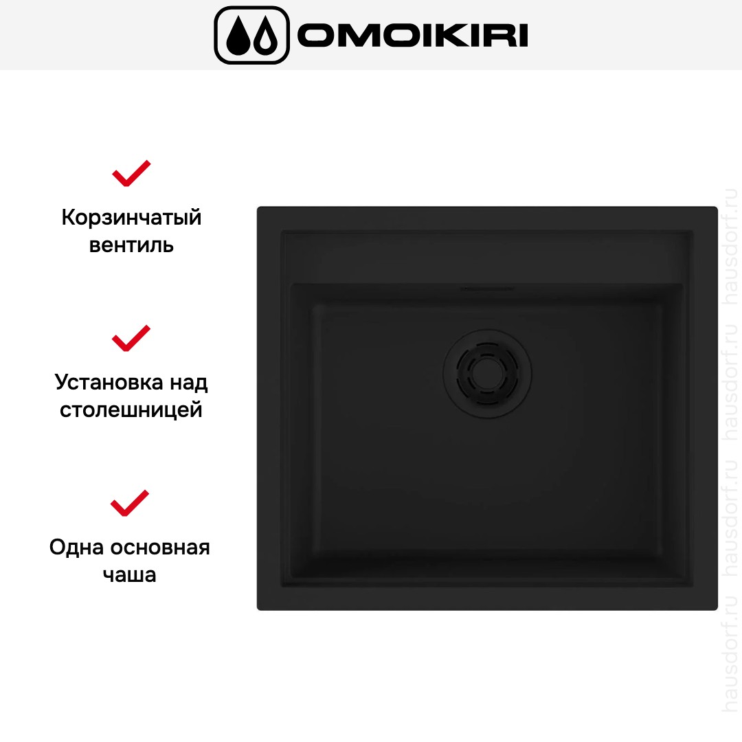 Накладная мойка Omoikiri — отличный выбор для тех, кто хочет создать гармоничное пространство с удобной сантехникой. простой в установке. Преимущество такой конструкции: легко подобрать практически к любой кухне и не придется демонтировать вместе с тумбой при ремонте или перестановке остальной мебели. Данная модель имеет стандартную форму, поэтому подходит большинству пользователей. Устанавливается над столешницей: это самый простой способ монтажа, зачастую с ним можно справиться даже без специалистов, главное — правильно рассчитать размеры ниши.
