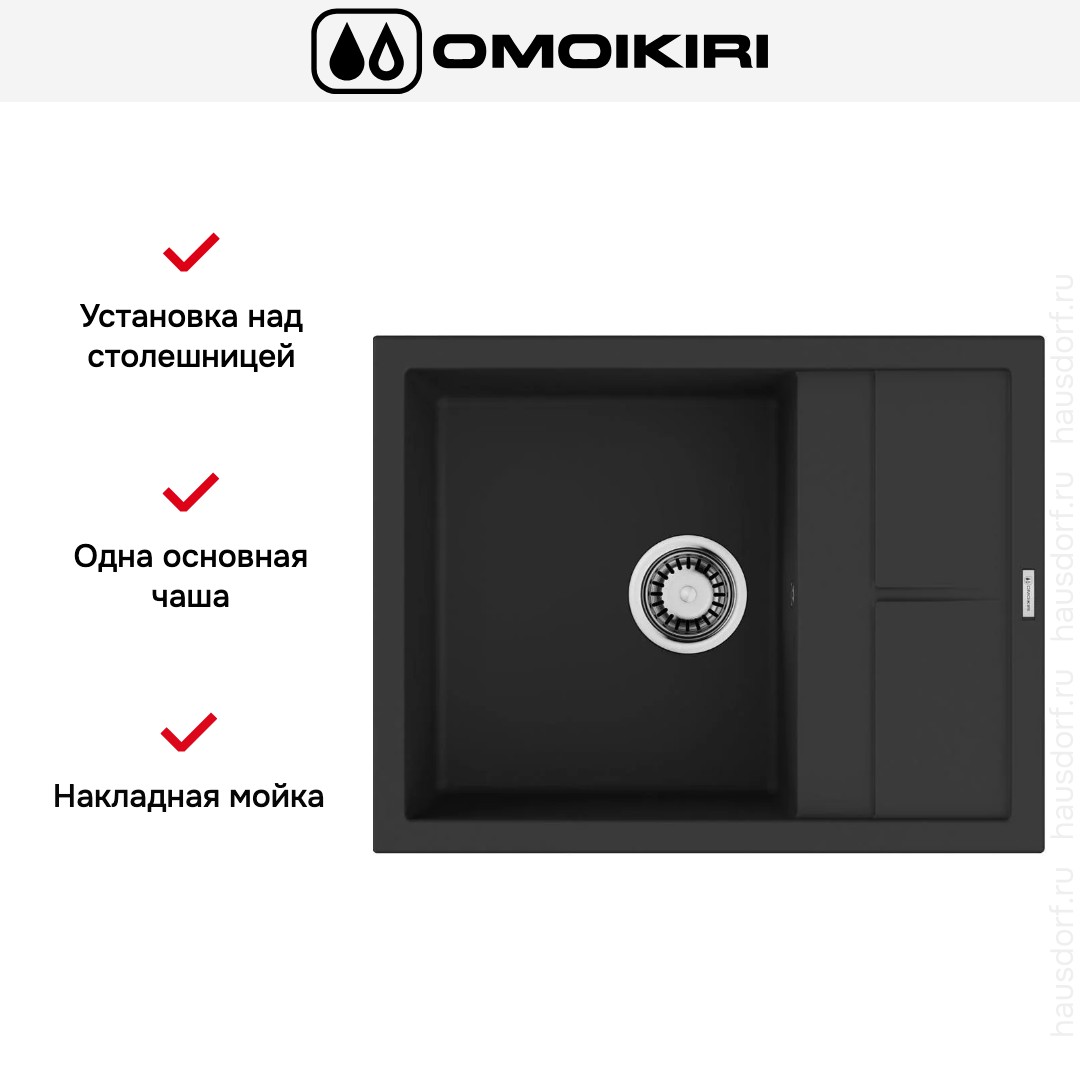 Накладная мойка Omoikiri — отличный выбор для тех, кто хочет создать гармоничное пространство с удобной сантехникой. простой в установке. Преимущество такой конструкции: легко подобрать практически к любой кухне и не придется демонтировать вместе с тумбой при ремонте или перестановке остальной мебели. Данная модель имеет стандартную форму, поэтому подходит большинству пользователей. Устанавливается над столешницей: это самый простой способ монтажа, зачастую с ним можно справиться даже без специалистов, главное — правильно рассчитать размеры ниши.