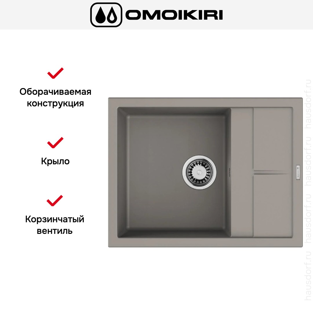 Обратите внимание на дизайнерские отличия мойки Омойкири, которые помогут в создании идеальной кухни в вашем доме. Она выполнена в цвете Серый Ленинград. Крыло, расположенное является дополнительным рабочим пространством, на котором можно сушить посуду, разделывать мясо и нарезать овощи.